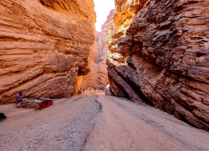 Matka alkaa Saltasta, mistä ajetaan 68-tietä pitkin etelään Lerman laakson läpi. Pienen kahvi- ja vessatauon jälkeen matka jatkuu Quebrada de las Conchasiin eli ”simpukoiden solaan”. Tie kiemurtelee kauniissa maisemissa, missä tuuli ja vesi ovat veistäneet kivistä ja kallioista toinen toistaan ihmeellisempiä muodostelmia. Matkan varrella tehdään useita pysähdyksiä valokuvien ottamista varten muun muassa vaikuttavilla La Garganta del Diablo- ja El Anfiteatro -kivimuodostelmilla.