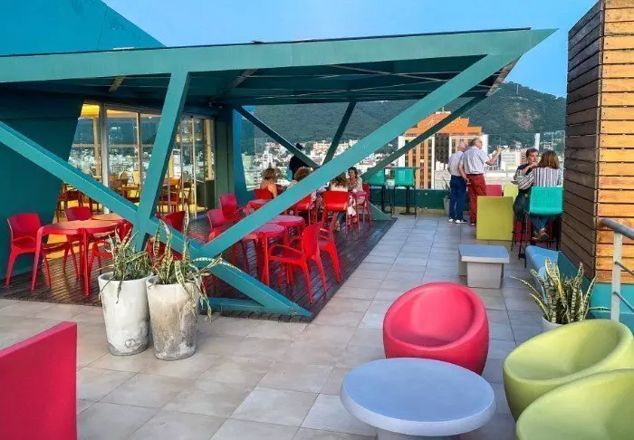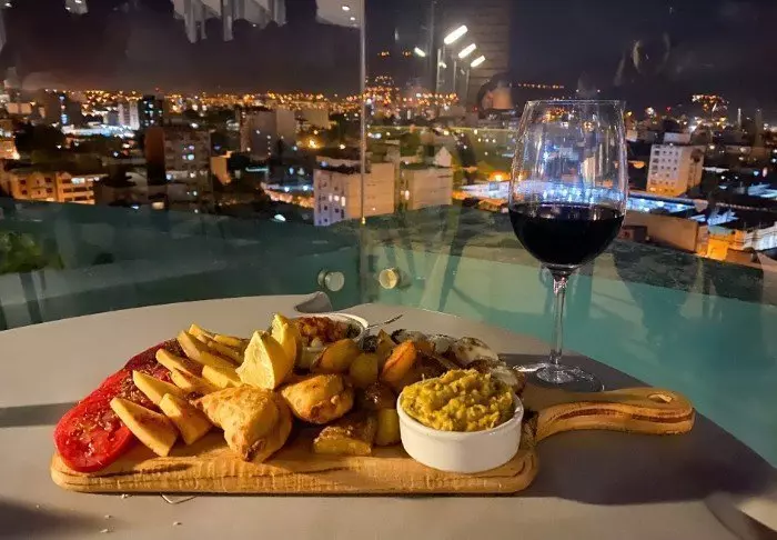 Hotellissa on kolme ravintolaa. Majoitukseen sisältyvä aamiainen tarjoillaan 1. kerroksen aamiaisravintolassa. Pohjakerroksessa sijaitseva ravintola-baari Los Cerros tarjoilee maukkaita paikallisia erikoisuuksia ja kansainvälisiä annoksia. Jos haluat vain pientä välipalaa, voit tilata tapaksia ja pikkupurtavaa hotellin kattoterassilta ja nauttia samalla upeista näköaloista kaupunkiin ja San Bernardo -vuorelle. Kattoterassille kannattaa suunnata etenkin ihastelemaan auringonlaskua ja maistelemaan paikallisia punaviinejä.