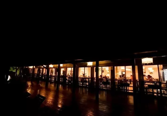Allasalueelle ja ravintolaan kuljetaan pitkin kapeita puukäytäviä. Päivän retkien päätteeksi on mukava rentoutua allasalueella ja virkistäytyä uima-altaassa.