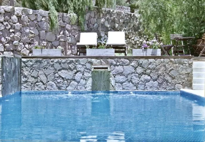 Hotellin puutarhassa on iso uima-allas, jossa on mukava virkistäytyä. Uinnin jälkeen voit rentoutua altaan äärellä, sulkea silmäsi ja kuunnella putousten kohinaa.