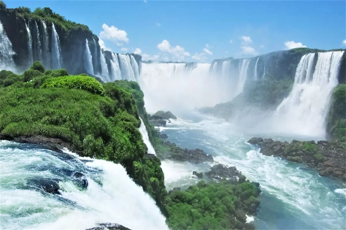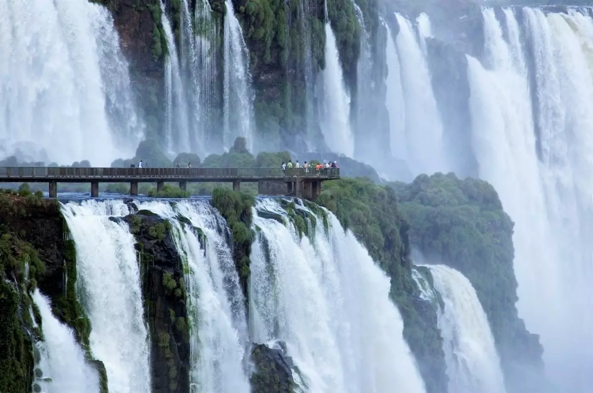 Iguassun putoukset muodostavat maailman suurimman vesiputouksen. Iguaçujoessa kuohuu 2,7 km matkalla yhteensä peräti 275 isoa ja vähän pienempää putousta. Vaikuttavat putoukset ovat totisesti ansainneet paikkansa UNESCO:n maailmanperintöluettelossa. Monet putouksista yhtyvät toisiinsa ja vyöryvät jopa 85 metriä korkean hevosenkengän muotoisen kallionreunan yli. Vaikka Iguassun putoukset eivät kenties ole yhtä kuuluisia kuin Pohjois-Amerikassa sijaitseva Niagara, ne peittoavat pohjoisen serkkunsa niin koossa kuin vaikuttavuudessakin. Niagaran putouksissa virtaa kunnioitettavat 2,8 miljoonaa litraa vettä sekunnissa, kun taas Iguassussa kallionreunan yli vyöryy huimat 6,5 miljoonaa vettä sekunnissa. Tarina kertoo Eleanor Rooseveltin, entisen Yhdysvaltain ensimmäisen naisen tokaisseen Iguassun putoukset nähdessään: ”Niagara on tähän verrattuna kuin tippuva vesihana!”