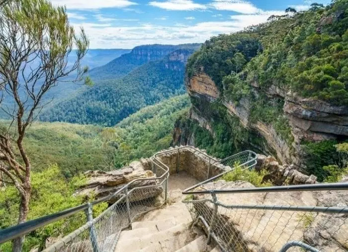 Täältä jatketaan matkaa Blue Mountains -vuoristoon. Reittiä ei ole täysin ennalta määrätty, joten sää- ja liikenneolosuhteet voidaan ottaa huomioon. Kuuluisimmat näköalapaikat, kuten Three Sisters ja Pulpit Rock, käydään tietenkin katsomassa, mutta myös vähemmän tunnetuilla alueilla ja näköalapaikoilla on mahdollisuus vierailla.