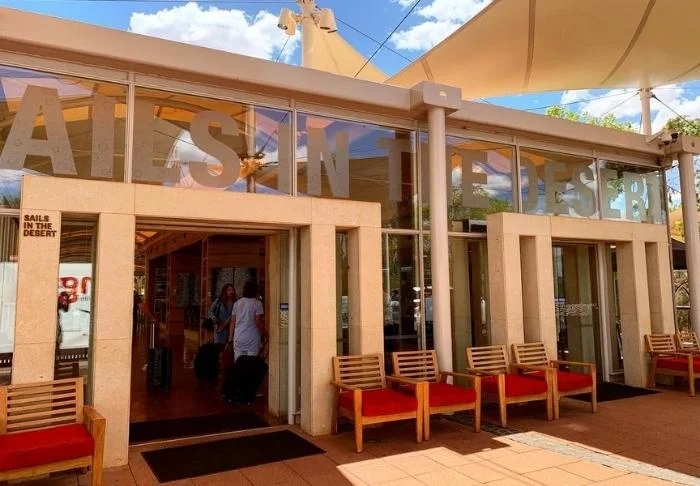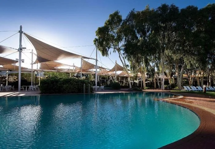 Iso valkoinen purje, josta resort on saanut nimensä, antaa sopivasti varjoa hotellin 228 huoneelle – Australian aurinkohan on tunnetusti paahtavan, armottoman kuuma.