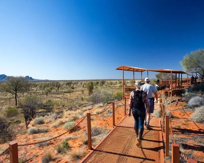 Kun aurinko on noussut, ajat noin 50 kilometrin matkan länteen kohti mahtavia Kata Tjutan kalliomuodostelmia. Myös Katatjutan alue on Australian alkuperäiskansalle pyhä paikka, ja joihinkin osiin turisteilla ei ole asiaa. Onneksi kansallispuiston alueella on myös vierailijoille avoimia kohteita, ja yksi suosituimmista patikkareiteistä kulkee kauniiden kalliomuodostelmien lomassa Walpa Gorgen läpi. Oppaasi kertoo matkan varrella paikan mielenkiintoisesta geologiasta. Ehkä saat selville, mitä nimi “Kata Tjuta” tarkoittaa?