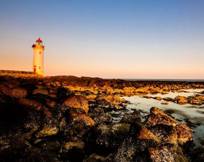 Jos et ole vielä saanut tarpeeksesi henkeäsalpaavista näkymistä, voit ajaa Cape Otwayn majakalle ihastelemaan värien vaihtumista auringonlaskun aikaan.