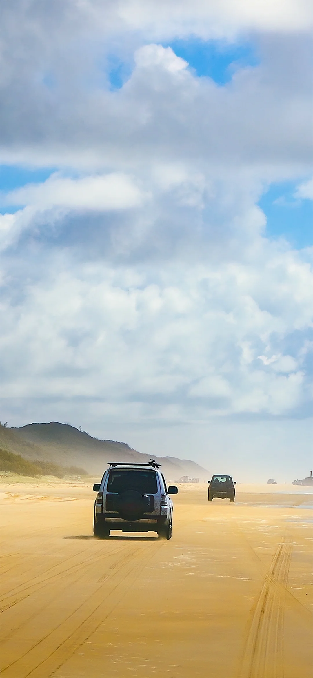 Päivä alkaa 45 minuutin lauttamatkalla kauniin Great Sandy Strait -salmen poikki. Seuraavaksi tutustut saareen oppaan johdolla nelivetoisessa bussissa – neliveto on välttämätön, jotta pääsette liikkumaan saarella nähtävyydestä toiseen. Voit käydä uimassa viehättävässä Mckenzie-järvessä, nähdä jättimäisiä saniaisia Central Stationin sademetsässä ja bongata kiehtovia villieläimiä ajaessasi pitkin kaunista 75 Mile Beachia, joka toimii saaren “päätienä”. Hyvällä tuurilla voit nähdä jopa saarella eläviä villikoiria eli dingoja. 75 Mile Beachillä sijaitsee myös ruosteinen Maheno-laivan hylky, joka huuhtoutui rannalle vuonna 1935 sattuneen hirmumyrskyn jälkeen.