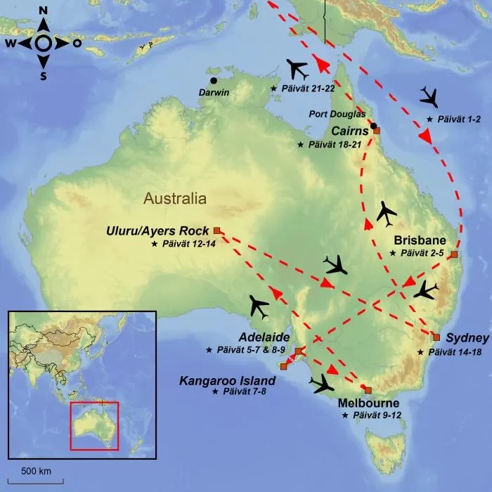 Suuri Australian kiertomatka lähestyy vihdoin loppuaan. Ehdit vielä hankkia viimeiset matkamuistot ennen kuin on aika siirtyä lentokentälle, mistä lennät Suomeen välilaskun/välilaskujen kautta.