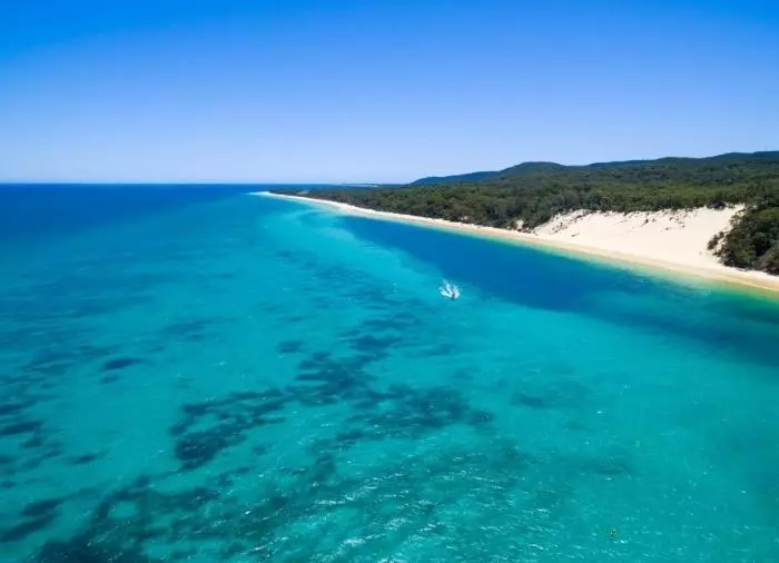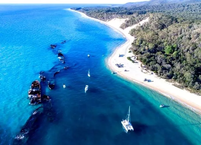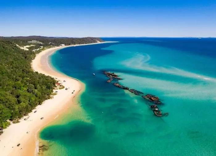 Moreton Island on maailman kolmanneksi suurin hiekkasaari. Se ei ole aivan yhtä tunnettu kuin naapurisaarensa K’gari – ja se on sääli, sillä Moreton on vähintään yhtä mielenkiintoinen, mutta huomattavasti vähemmän ruuhkainen käyntikohde. Saaren korkein kohta on Mount Tempest, maailman korkein kasvillisuuden peittämä rannikolla sijaitseva hiekkadyyni, joka kohoaa peräti 280 metriä merenpinnan yläpuolelle.