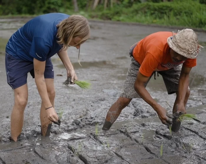 Päivän aikana kuljetaan kapeita polkuja pitkin viljelijöiden omia reittejä luomuriisipelloille. Siellä tapaat viljelijän, joka jakaa oman tarinansa ja kertoo, miten luomuviljely liittyy balilaiseen hindulaisuuteen ja syvään kunnioitukseen maata ja luontoa kohtaan. Saat kuulla, kuinka aiemmista, kemiallisia torjunta-aineita käyttäneistä menetelmistä siirryttiin kestävämpään tapaan, joka on palauttanut elinvoiman pelloille.