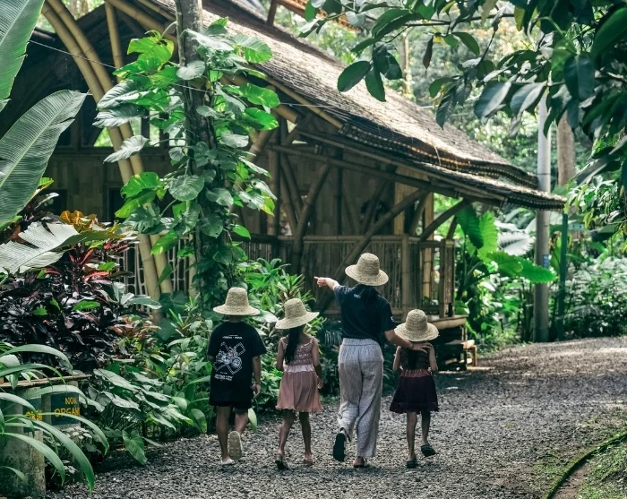 Vaellus kulkee vihreiden riisipeltojen halki ja pienten subak-kanavien vartta pitkin, jotka johtavat vettä maiseman läpi. Elämää on kaikkialla: sammakot kurnuttavat vedessä, pienet kalat uivat riisintaimien lomassa ja linnut liitelevät peltojen yllä etsien kypsiä riisinjyviä. Oppaan avustuksella lapset oppivat huomaamaan luonnon pienet yksityiskohdat, jotka merkitään sitä mukaa luontobingokorttiin.