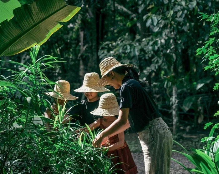 Matka jatkuu vehreään metsään, jossa kaakaopuut ja mangostaanipuut kätkevät uusia elämyksiä. Opas kertoo kasveista ja näyttää, miten hedelmiä korjataan, kun lapset samalla tähyilevät värikkäitä lintuja, koppakuoriaisia ja perhosia, jotka elävät metsässä. Täällä luonto on sekä elävä että läsnä, ja oppiminen syntyy leikin ja kokemisen kautta.