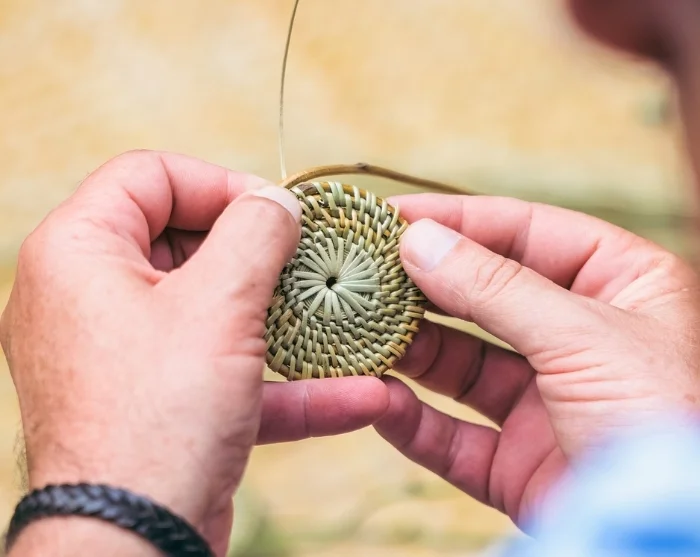Työ tehdään hata-puusta saatavilla köynnösmäisillä, joustavilla kuiduilla, joita on käytetty balilaisessa punonnassa vuosisatojen ajan. Kärsivällisen ohjauksen avulla opit valmistelemaan kuidut kuorimalla, kuivaamalla ja pehmentämällä ne ennen varsinaista punontaa. Rauhallinen, toistuva työ luo lähes meditatiivisen tunnelman, jossa huomio kiinnittyy luontevasti itse prosessiin.