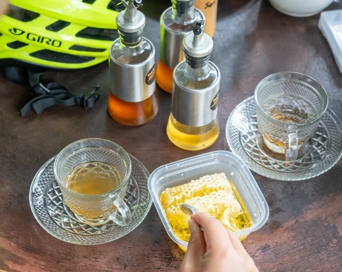 Matka alkaa tunnelmallisella pyöräilyllä pehmeitä harjanteita pitkin. Suurin osa reitistä on alamäkeä ja välissä on vain muutamia ylämäkiosuuksia. Matkan varrella maisemaa elävöittävät värikkäät kukat, sammalpeitteiset temppelit ja pienet pyhäköt. Vierailet ainutlaatuisella mehiläistilalla, jota pyörittää kuulovammainen pariskunta. He ovat intohimolla luoneet kestävän mehiläistarhauksen. Saat kuulla heidän tarinansa ja maistaa herkullista hunajaa, jota tuotetaan luontoa ja perinteitä kunnioittaen.