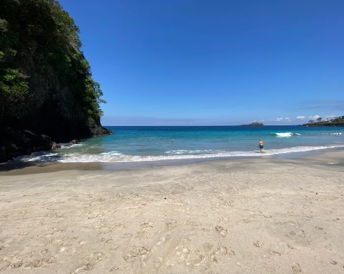 maiseman avartuessa ja matkanteon rauhoittuessa luonnollisesti. Perillä odottaa Virgin Beach – ranta, jota reunustavat tummat, vulkaaniset kalliot ja kirkkaan sininen meri. Ranta on avara ja vaaleahiekkainen, ja siellä on hyvin aikaa nauttia auringosta sekä pulahtaa kirkkaaseen mereen. Hetken rentoutumisen jälkeen tarjolla on aito paikallinen lounas, joka valmistetaan tuoreesta kalasta ja paikallisista raaka-aineista.