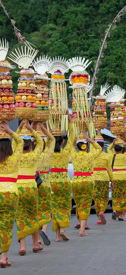 Ubud on viehättävä kaupunki, jossa vallitsee aivan ainutlaatuinen tunnelma. Uskonnot ja perinteet ovat paikallisille erityisen tärkeitä, ja kaduilla järjestetään usein seremoniallisia kulkueita, joissa voit nähdä valkoiseen pukeutuneiden balilaisten hindujen kantavan temppeleiden alttareille isoja koreja täynnä hedelmiä ja kukkia. Eloisan temppelikulkueen seuraaminen on kiehtova ja mukaansatempaava elämys.