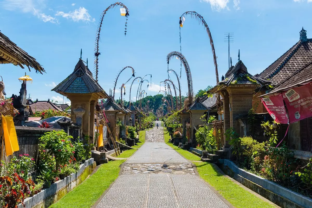 Ensimmäinen vierailukohde on Penglipuran, joka on itäisen ylängön luonnonkauniissa maisemissa sijaitseva vanha perinteinen balilainen maalaiskylä. Viihtyisän pikkukylän asukkaat ovat onnistuneet pitämään kiinni vanhoista perinteistä jo useiden sukupolvien ajan. Kävelykierroksen aikana tapaat kylän asukkaita ja pääset katselemaan heidän kauniita asuintalojaan ja temppeleitään. Kylän vehreissä maisemissa kasvaa myös paljon eksoottisia puita ja kasveja. Huomaat pian, kuinka rauhallinen ja levollinen tunnelma kylässä vallitsee. Moottoriajoneuvot ovat kiellettyjä, ja siksi täällä on myös erityisen puhdasta – jopa niin puhdasta, että vuonna 2016 Penglipuran valittiin maailman kolmanneksi puhtaimmaksi kyläksi heti hollantilaisen Giethoornin ja intialaisen Mawlynnongin jälkeen.