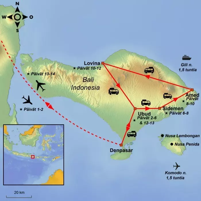 Sukella Balin sieluun Ubudissa ja Sidemenin koskemattomissa maisemissa, koe Amedin snorklausparatiisi sekä Lovina, joka tunnetaan tummista vulkaanisista rannoistaan.