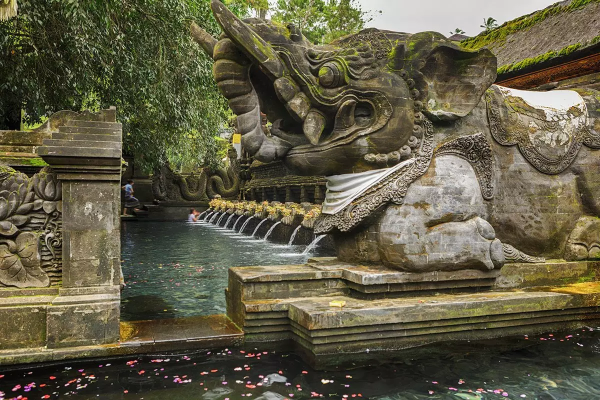 Aamiaisen jälkeen opas noutaa sinut hotelliltasi, josta lähdette yhdessä ajamaan koilliseen kohti pikkuista Tampaksiringin kaupunkia. Määränpäänä on Tirta Empulin pyhä vesitemppeli, joka tunnetaan 12 pyhästä lähteestään. Tirta Empul on vaikuttavan kaunis kokonaisuus, johon kuuluu upeita patsaita, taidokkaita kaiverruksia ja pieniä kalalampia karppeineen. Temppelin merkittävin osa on pyhää vettä sisältävä allas, jossa voit halutessasi kylpeä yhdessä paikallisten kanssa. Paikalliset uskovat pyhän veden puhdistavan niin sielun kuin ruumiinkin, ja kiitokseksi he tuovat temppeliin alttarilahjoja ja suitsukkeita, joiden tuoksu tuntuu huumaavana kaikkialla.