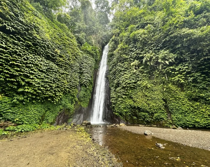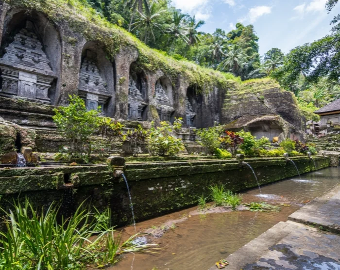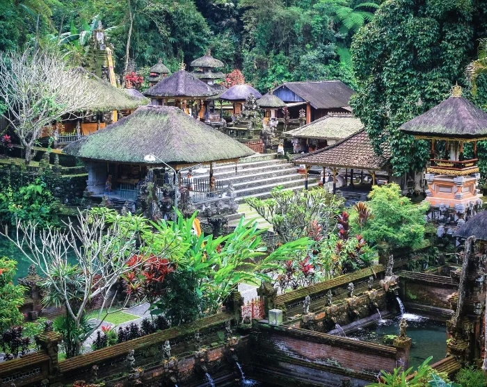 Matka jatkuu seuraavaksi Sebatu-temppelille, joka tunnetaan myös nimellä Pura Gunung Kawi Sebatu. Sitä pidetään yhtenä Balin rauhallisimmista ja hengellisimmistä temppeleistä. Temppeli sijaitsee upeasti vehreän viidakon ympäröimänä ja on rakennettu kristallinkirkkaan lähteen ympärille, jonka uskotaan omaavan parantavia voimia. Täällä saat mahdollisuuden kokea perinteisen balilaisen vesipuhdistusseremonian, jossa pyhän lähteen vesi symbolisesti puhdistaa kehon ja mielen. Oppaasi kertoo rituaalin merkityksestä ja näyttää, kuinka paikalliset astuvat viileisiin altaisiin, lausuvat hiljaisen rukouksen ja antavat veden virrata ylitseen – samalla kun voit itse aistia rauhan ja syventymisen tunnelman.