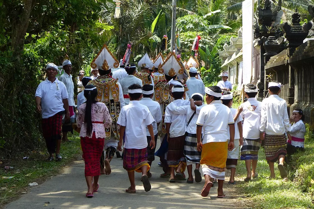 Temppeleissä ja kaduilla järjestetään usein seremoniallisia kulkueita, jolloin voit nähdä perinteisiin asuihin pukeutuneita balilaisia matkalla paikallisiin temppeleihin viemään lahjoja hindulaisille jumalille Brahmalle, Shivalle ja Vishnulle. Kulkueen seuraaminen voi olla todella hauska ja mukaansatempaava elämys.
