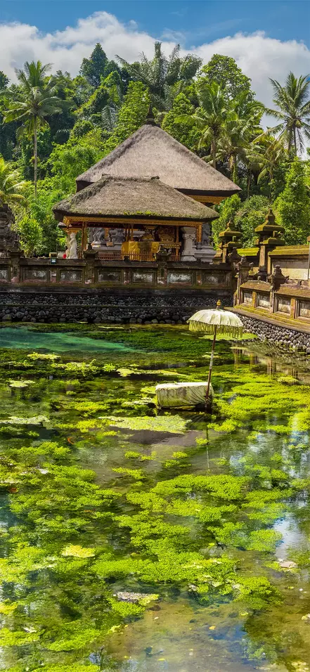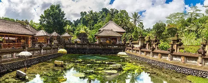 Ensimmäinen etappi on Tampaksiringissa sijaitseva Tirta Empulin vesitemppeli ja sen 12 luonnonlähdettä. Uskomattoman kaunis temppeli on koristeltu hienoilla veistoksilla, ja sen viehättävissä kalalammissa uiskentelevat värikkäät karpit. Temppelin tärkein nähtävyys on iso allas, jossa voit kylpeä pyhässä vedessä aivan kuten balilaisetkin, jotka tuovat temppelille alttarilahjoja ja sytyttävät tuoksuvia suitsukkeita.