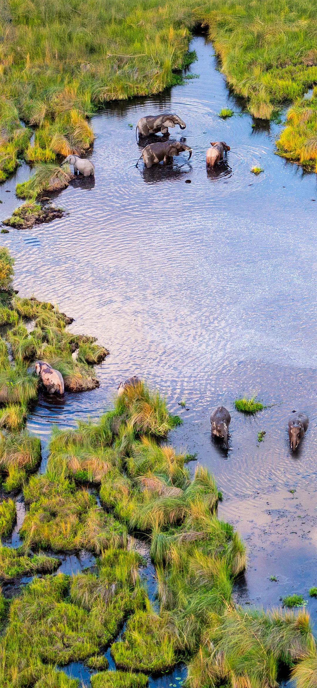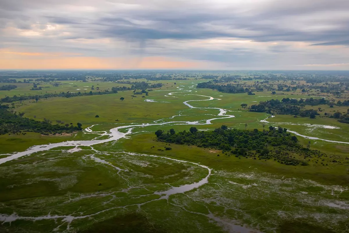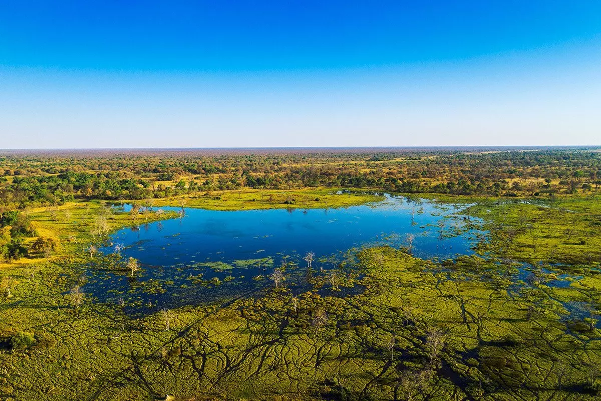 Tässä osassa suistoa maisemat ovat hyvin vaihtelevia. Korkeat mopanepuut ja tiheät pensaskasvustot antavat paikoin tilaa kuiville tasangoille, joiden aavemaiset kelopuut ovat osan vuodesta veden peitossa. Kaiken keskellä virtaavat joet, joita sadat virtahevot pitävät kotinaan.