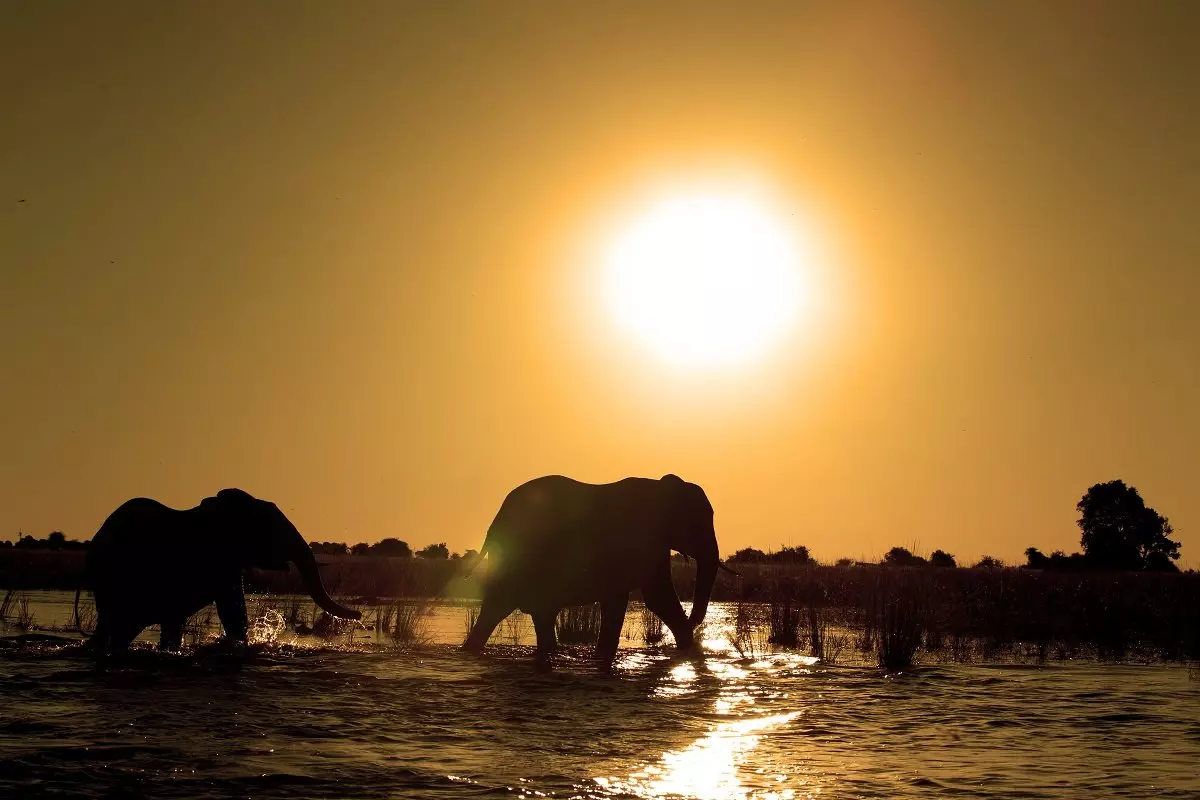 Okavango Deltan auringonlaskut ovat aivan sanoinkuvaamattomia. Näkymä, jossa puolikuolleet puut heijastuvat veteen, norsuista tulee siluetteja, ja taivas muuttuu täysin violetiksi ja vaaleanpunaiseksi, saa useimmat ihmiset haukkomaan henkeään.