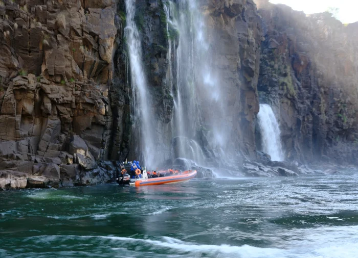 Pääset näkemään valtavan putouksen alhaalta päin, ja kun vene lopuksi vielä ajaa yhden pienemmän putouksen alta, voit kehua käyneesi luonnon omassa suihkussa Iguassun putouksilla! Putouksen keskelle meneminen on tietenkin täysin vapaaehtoista. Joka tapauksessa tulet kastumaan retken aikana läpimäräksi, joten kannattaa vaihtaa päälle uimapuku tai ainakin sonnustautua sadeviittaan. Arvotavaroita varten saat vesitiiviin pussin.