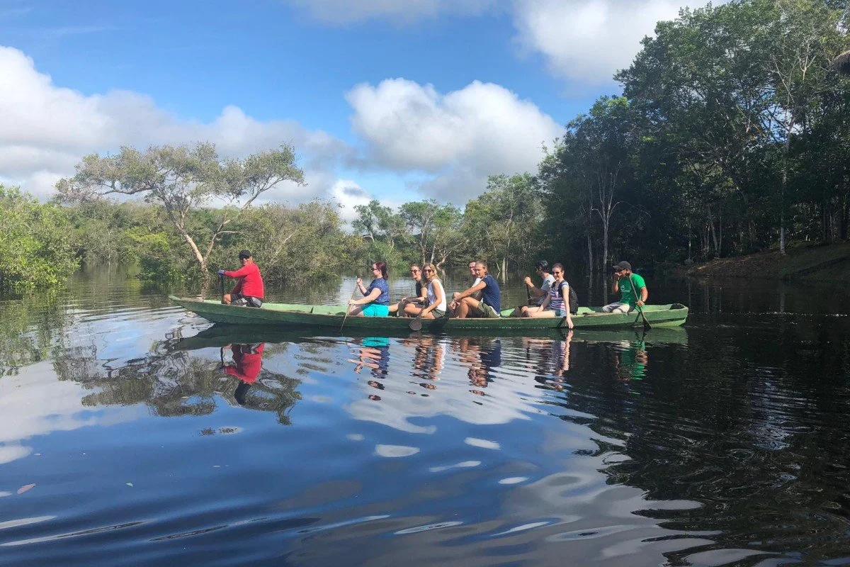 Liikutaan perinteisillä puukanoilla, joita jokivarsiyhteisöjen asukkaat käyttävät. Matkan aikana opetellaan melomaan kuin Amazonasin asukkaat samalla kun etenet hiljalleen tiheän sademetsän läpi. On hyvät mahdollisuudet kuulla eläimiä – ja jos olet onnekas myös nähdä niitä. Muista kiikari!