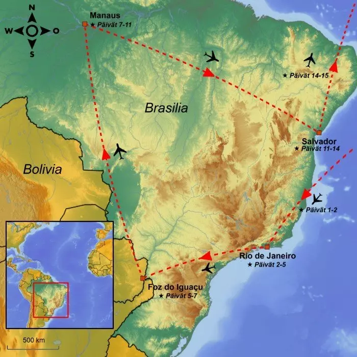Lähde upealle kiertomatkalle ympäri värikästä Brasiliaa. Koet Rio de Janeiron, Iguassun putoukset, Amazonasin sademetsän ainutlaatuisen ekosysteemin sekä Salvadorin eloisan afrobrasilialaisen kulttuurin ja tunnelman.