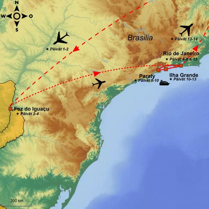Näe maailman suurin vesiputous Iguazússa, nauti suurkaupungin sykkeestä Riossa, tutustu siirtomaa-ajan historiaan Paratyssa ja rentoudu lopuksi kauniilla Ilha Granden saarella.