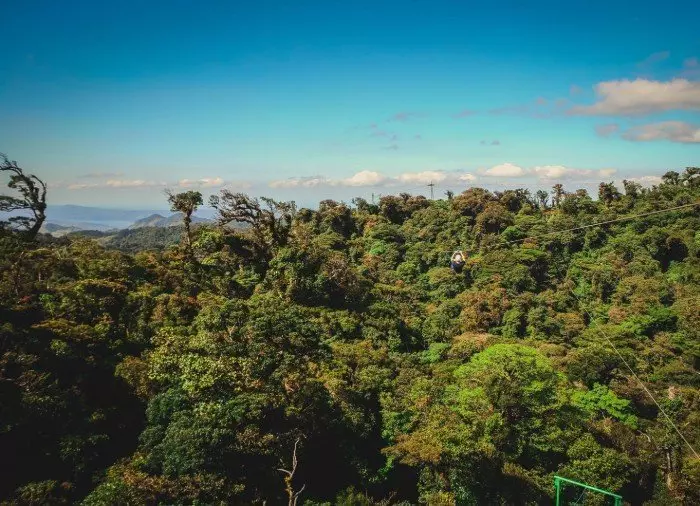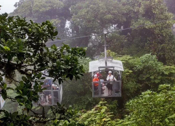 Puiden latvoihin rakennettujen tasanteiden välille on viritetty vaijereita, joiden varassa kiidät vatsanpohjaa kutkuttavalla vauhdilla pilvimetsän rehevän kasvillisuuden yli – ja joskus jopa pilvien läpi. Vaijeriosuuksia on kaikkiaan kahdeksan, joista pisin on 750 metriä pitkä ja korkein kulkee 100 metrin korkeudella maanpinnasta. Nopeus kiihtyy parhaimmillaan jopa 70 kilometriin tunnissa!