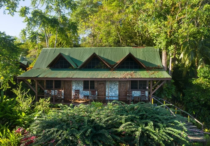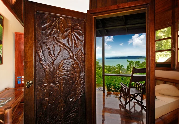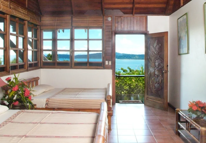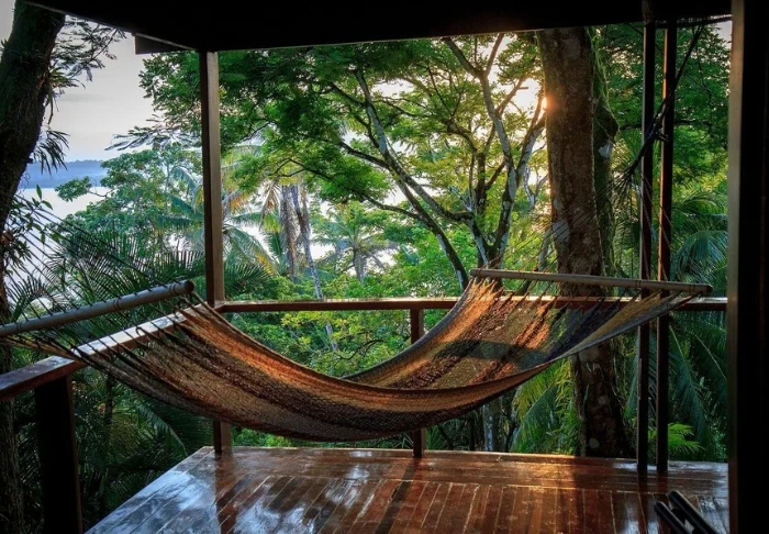 Verandalla voi rentoutua ja ihailla näkymiä lahdelle ja sademetsään.