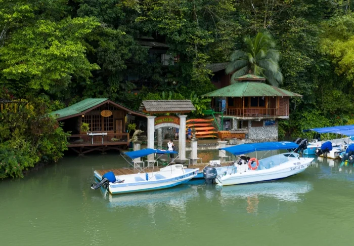 Hotellilta kulkee pieni polku veden tuntumassa, joka vie Drake Bayn kylään. Matka kestää jalan noin 10–15 minuuttia ja kulkee vehreän ympäristön halki, mikä antaa sinulle kauniin ja aidon vaikutelman alueesta – sekä rannikosta ja kylästä että paikallisten leppoisasta elämäntavasta.