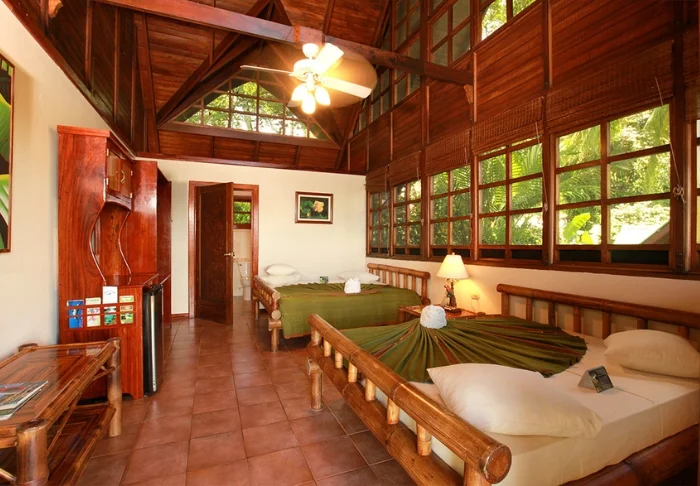 Lodgessa on vain 13 huonetta, mikä luo kodikkaan ja lämminhenkisen tunnelman, jossa viihtyy heti. Huoneet on sisustettu yksinkertaisesti ja rakennettu luonnonmateriaaleista, kuten puusta ja kivestä, jotka sulautuvat ympäristöön. Kaikissa huoneissa on oma kylpyhuone, jääkaappi, kattotuuletin sekä suuret ikkunat, joissa on hyönteisverkot, joten trooppinen tuulenvire kiertää tilassa luonnollisesti. Huoneissa ei ole tarkoituksella ilmastointia, sillä hotelli painottaa kestävyyttä ja luonnollista ilmanvaihtoa. Korkea huonekorkeus yhdessä tuulenvireen kanssa pitää huoneet miellyttävinä ja ilmavina.
