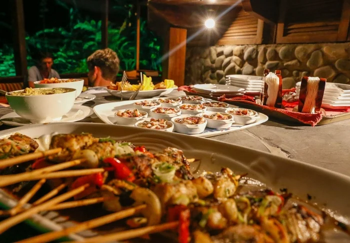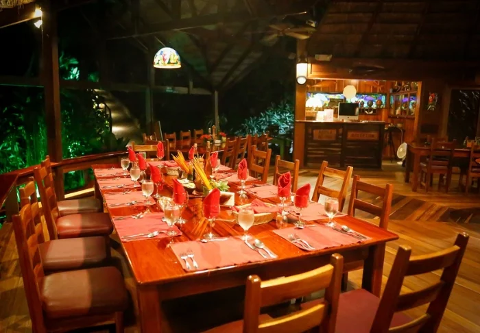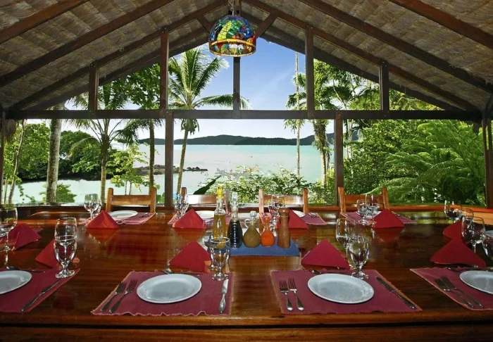 Hotellin ravintola The Great Room toimii luontevana kohtaamispaikkana. Tarjolla on paikallisista raaka-aineista valmistettuja annoksia – monet niistä tulevat hotellin omasta La Perla -keittiöpuutarhasta. Keittiössä painotetaan makua, laatua ja kestävyyttä massatuotannon sijaan, ja ateriat nautitaan avoimessa ruokasalissa, josta avautuu näkymä merelle ja sademetsään.