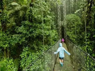 Ainutlaatuiseen ekosysteemiin voi tutustua joko vatsanpohjaa kutkuttavalla kävelyllä puiden latvojen väliin pingotetuilla riippusilloilla tai jännittävällä zipline-ajelulla rehevän sademetsän halki.