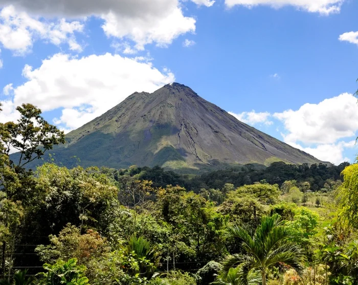 Sademetsästä jatketaan Costa Rican kuuluisimmalle tulivuorelle, Arenalille, joka kohoaa majesteettisena La Fortunan kaupungin takana.