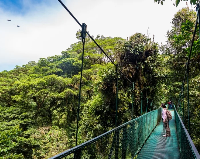 Monteverdessä voit vierailla tunnelmallisessa pilvimetsässä, jossa ainutlaatuinen kasvisto on koettavissa riippusiltojen varassa korkealla puiden latvustossa.