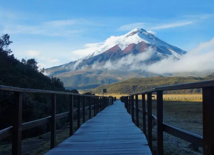 Koko kävelyretken ajan voit nauttia upeista maisemista Cotopaxi-tulivuorelle, joka on yksi maailman korkeimmista aktiivisista tulivuorista.