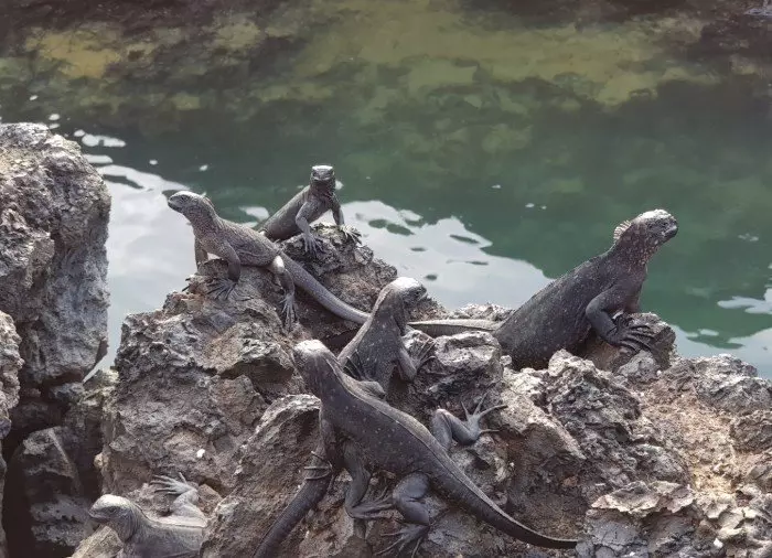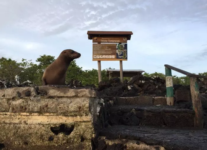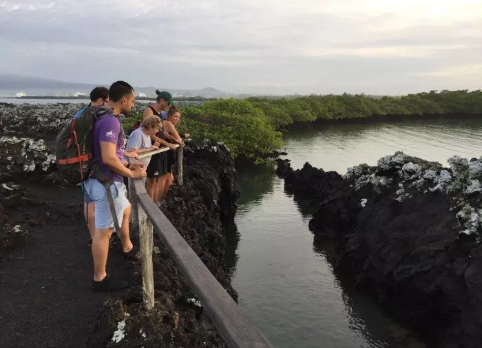 Sinut noudetaan hotelliltasi Puerto Villamilista ja viedään satamaan. Satamasta matka jatkuu veneellä edelleen Las Tintorerasin saarille, jonne ei ole kovin pitkä matka Puerto Villamilista. Maihinnousun jälkeen on ensimmäisenä vuorossa lyhyt ja leppoisa 15 minuutin patikkaretki laguunille, jossa pääset näkemään vastasyntyneitä merileijonia ja valkoevähaita. Merileguaanit puolestaan paistattelevat joukolla päivää laguunia ympäröivillä kallioilla.