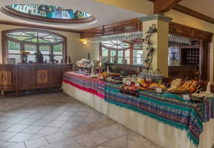 Hotellin elegantissa Las Cupulas -ravintolassa tarjoillaan runsas aamiainen buffettyyliin. Ravintola on avoinna koko päivän ja tarjoaa jännittävän valikoiman sekä paikallisia ecuadorilaisia että kansainvälisiä ruokia.