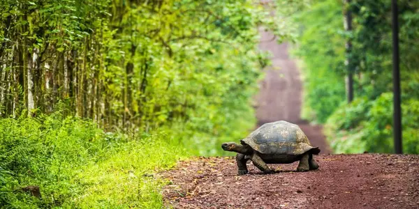 Ensimmäiset eläimet ja kasvit ovat todennäköisesti saapuneet saarille joko ilmateitse, minkä jälkeen lajien kehitys on kulkenut omaa rataansa. Galápagossaarilla elää enemmän kotoperäisiä lajeja kuin missään muualla maailmassa. Yksi Galápagossaarten kiehtovimmista eläimistä on massiivinen galápagoksenjättiläiskilpikonna, jonka mukaan saaristo on saanut nimensäkin.