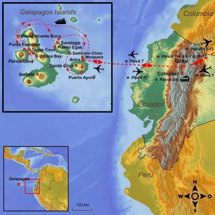 Huomaa, että Galápagossaarilla päiväohjelma voi muuttua milloin tahansa. Sääolosuhteet ja paikallisten viranomaisten määräykset voivat johtaa reitin muuttumiseen lyhyelläkin varoitusajalla.