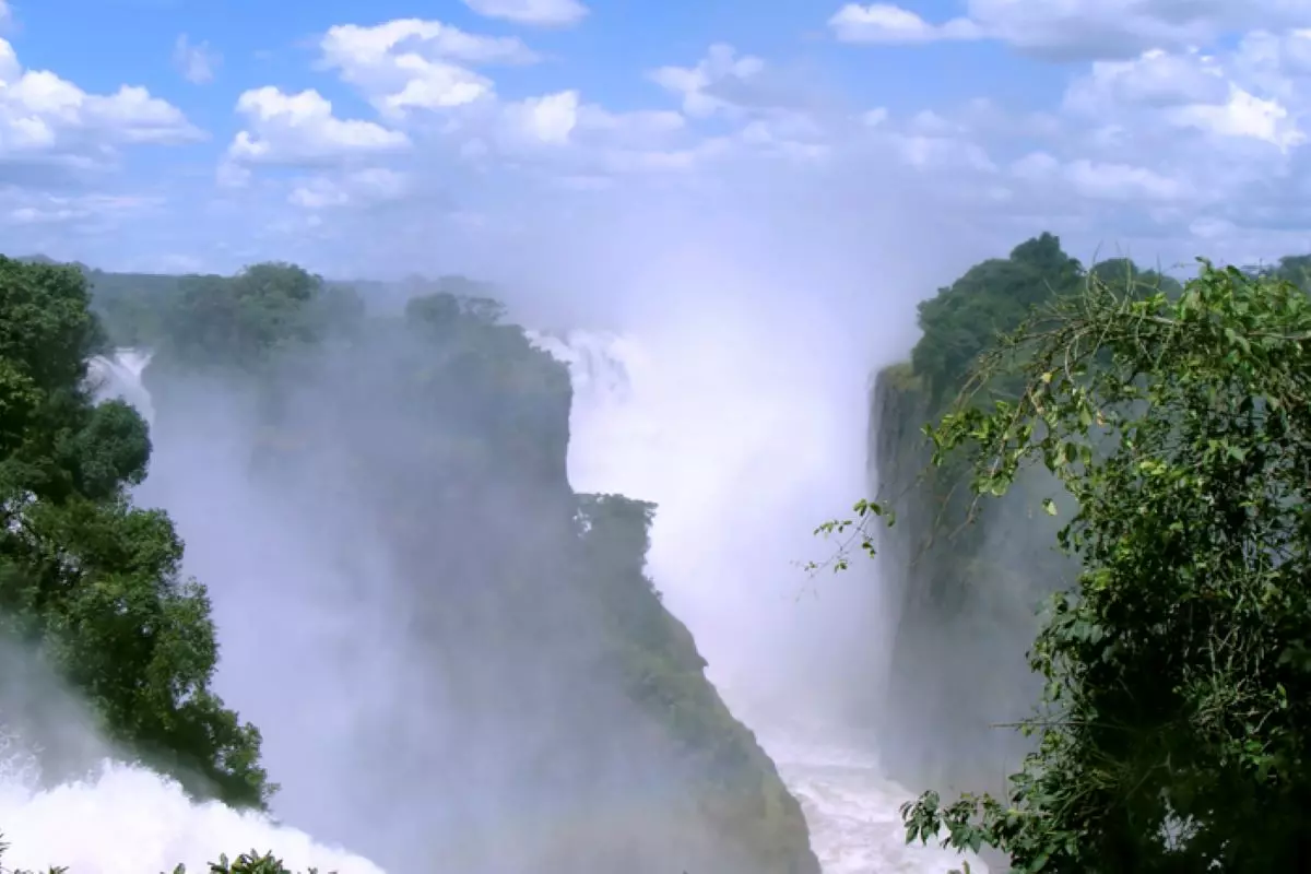 Usein saat ensimmäisen silmäyksen majesteettisista Victorian putouksista jo lentokoneesta. Vesisumu putousten yllä kohoaa useiden satojen metrien korkeuteen, ja sen nähdessäsi ymmärrät heti, miksi paikalliset kutsuvat vesiputousta nimellä ”Mosi-oa-Tunya” – savu, joka jylisee. Vesihöyry muistuttaa todellakin savua, mutta auringossa kimaltelevista sateenkaarista voit nähdä, että se on kuin onkin puhdasta vettä.