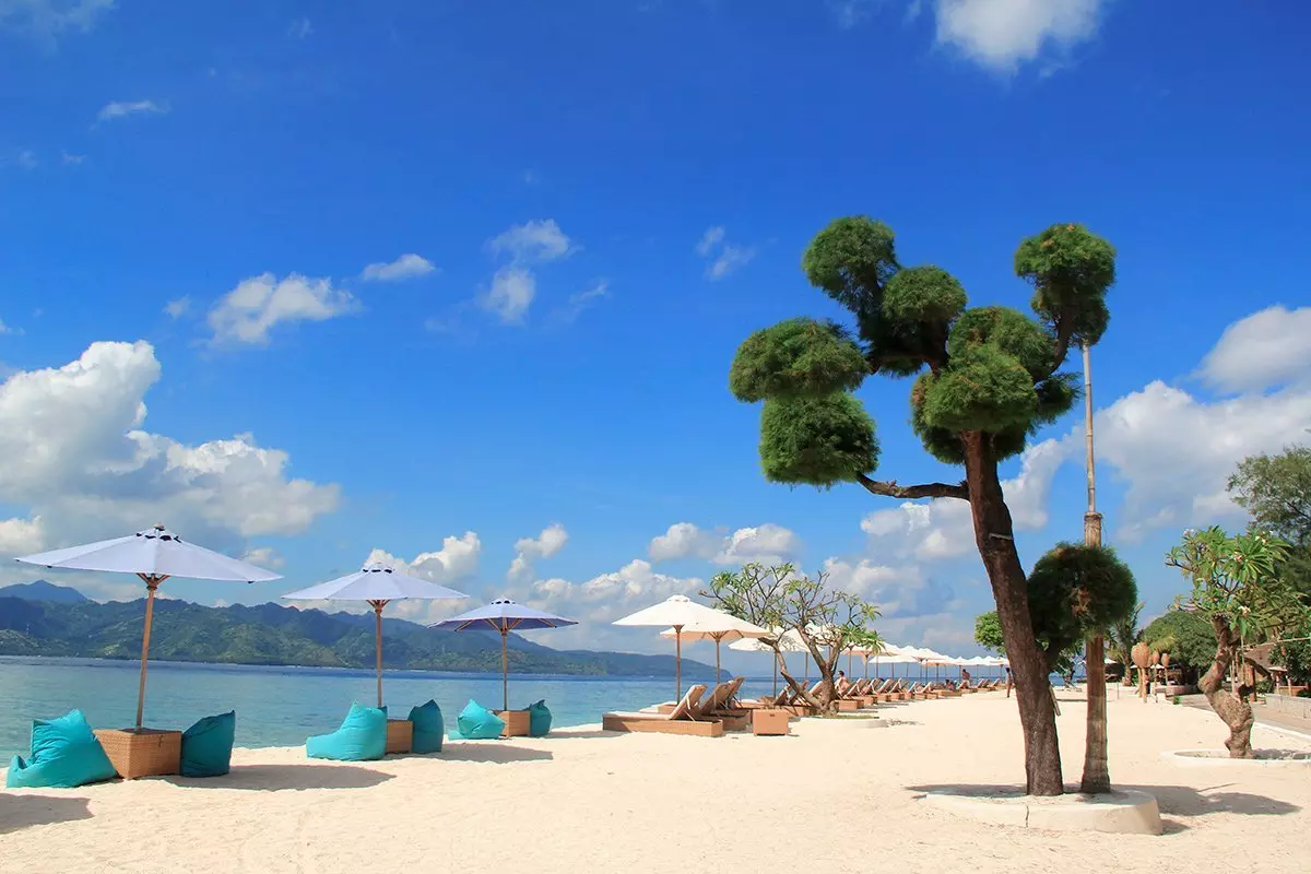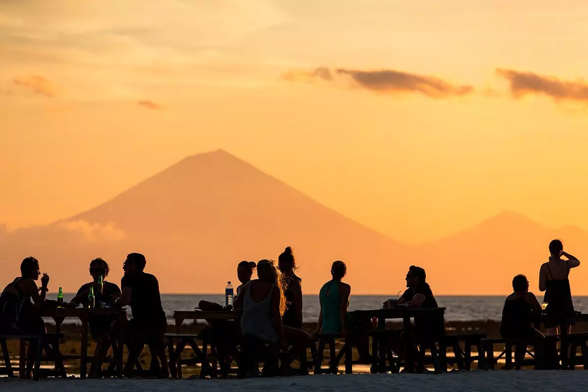 Matka jatkuu Gili Trawanganille, joka on yksi kolmesta Gili-saaresta. Gili Trawanganin vetonauloja ovat etenkin sen hienot hiekkarannat ja hyvät sukellus- ja snorklausmahdollisuudet. Pinnan alla voit törmätä mm. merikilpikonniin. Illan tullen voit loikoilla säkkituolissa värikkäitä drinkkejä siemaillen, kun aurinko hiljakseen laskee Balilla sijaitsevan Mt. Agungin taakse,