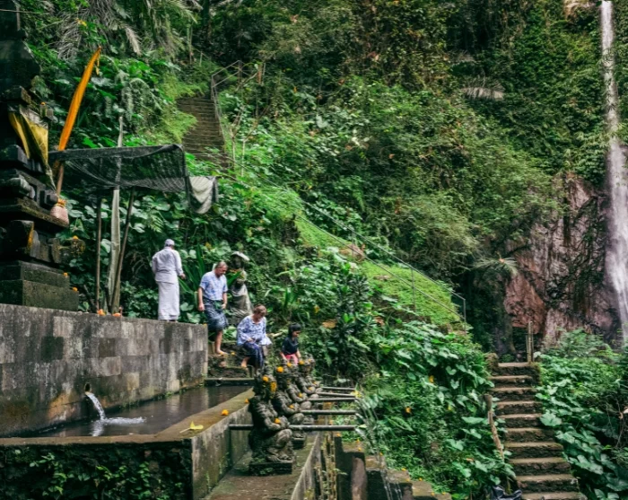Lähdet hotellilta Sebatuun, jossa paikallinen opas johdattaa sinut rauhallisten temppelialueiden halki ja kertoo temppelin roolista balilaisten uskossa ja arjessa. Vierailet myös temppelin pyhällä lähteellä, jolla uskotaan olevan puhdistava voima. Opas auttaa sinua pukemaan perinteisen balilaisen sarongin ja näyttää, miten jumalille rukoillaan. Tutustut värikkäisiin uhrilahjoihin ja niiden symboliseen merkitykseen ennen kuin osallistut perinteiseen puhdistautumisrituaaliin pyhässä vedessä.