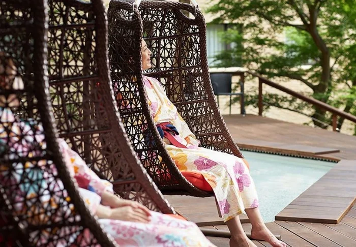Aamulla tai illalla voit pukeutua perinteiseen yukata-kimonoon ja vierailla spaosastolla, jossa voit nauttia erilaisista hierontapalveluista ja kasvohoidoista.