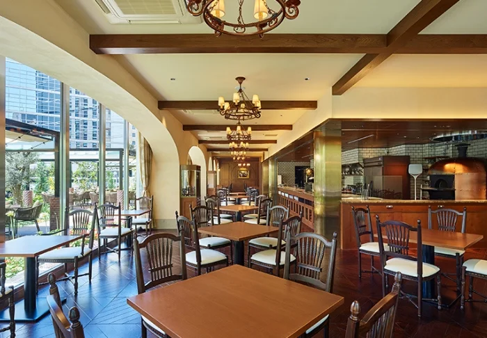 Aamiainen nautitaan hotellin pääravintolassa, jossa runsas buffet tarjoaa valikoiman sekä japanilaisia että länsimaisia makuja. Kauniilla säällä voit siirtyä aterioimaan ravintolan vehreälle sisäpihalle ja aloittaa päivän rauhallisessa tunnelmassa. Sama viihtyisä piha kutsuu takaisin myös myöhemmin päivällä, jos italialaiset herkut tai kuppi espressoa houkuttelevat.