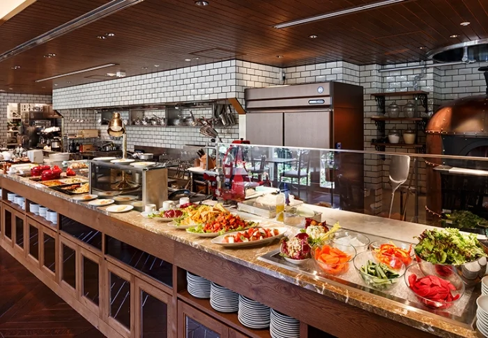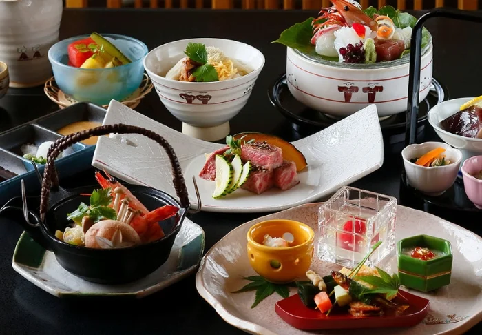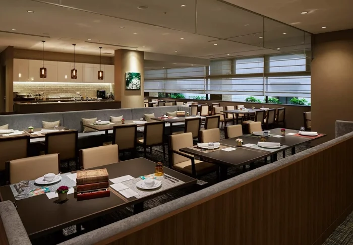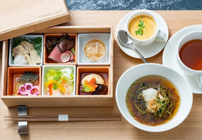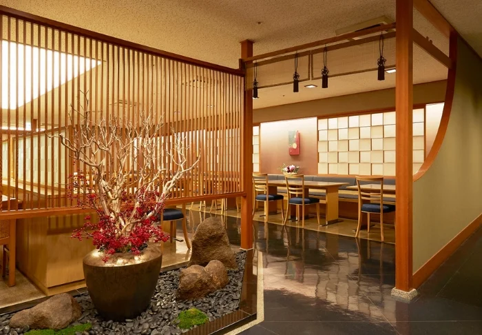 Hotellin kutsuva ravintola, jossa on korkea katto ja suuret ikkunat, tuo kauniisti esiin vuodenaikojen vaihtelun kevään värikkäistä sävyistä syksyn punaisiin lehtiin. Aamiaisbuffetissa voit nauttia yli 25 herkullisesta annoksesta, jotka ovat pääosin japanilaisen keittiön innoittamia. Illallisaikaan ravintolassa tarjotaan japanilaisia aterioita, joiden kanssa voit 90 minuutin ajan nauttia rajoittamattomasti juomia (myös alkoholijuomia).